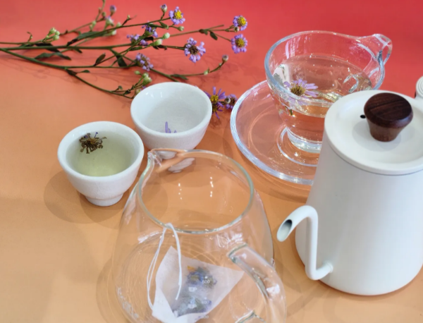 완성된 쑥부쟁이꽃차를 물 75–85°C에서 우려 마셔보세요.
