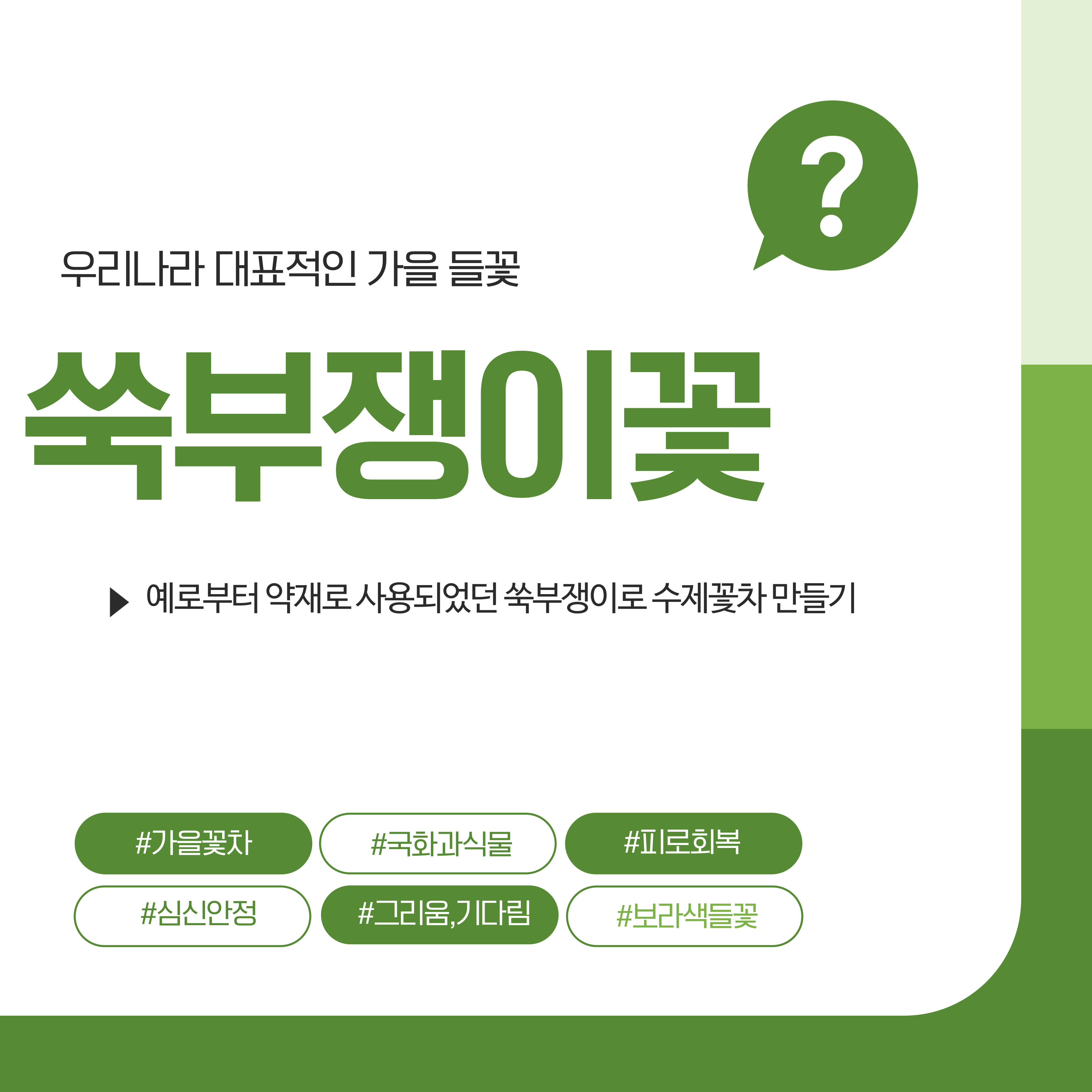 가을을 대표하는 들꽃이지만 성인이 된 지금 다시 바라보면 단순한 들풀을 넘어 건강을 주는 자연의 재료라는 사실이 놀랍기만 합니다.