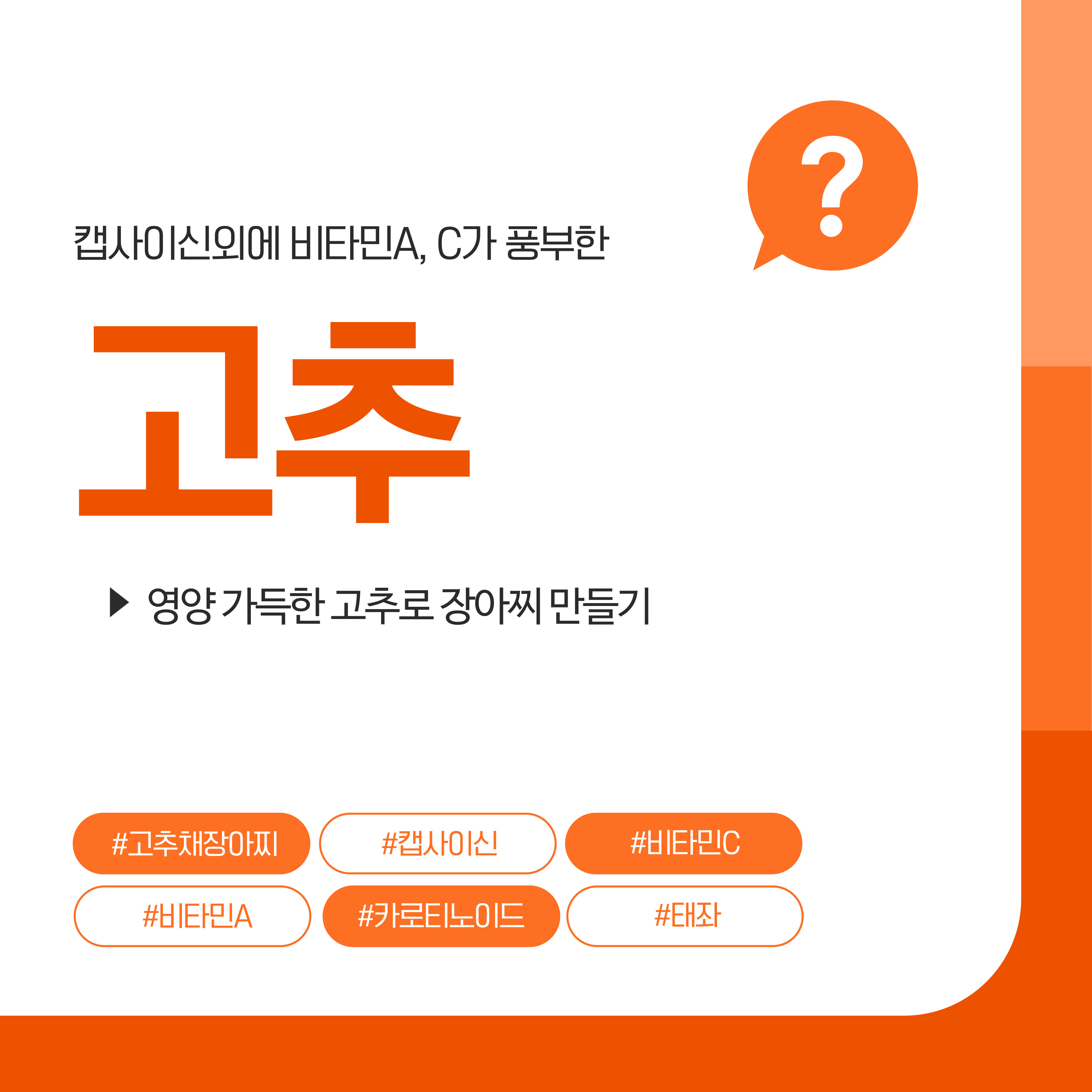 다양한 요리 방법으로 고추가 가지고 있는 모든 영양소를 즐겨보시기 바랍니다.