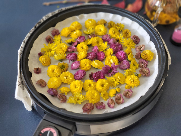 국화꽃을 3~5분 정도 쪄주는 과정을 추가합니다.