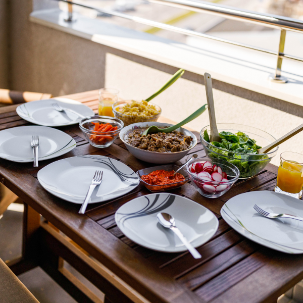 색감 있는 식기 : 음식을 돋보이게 하는 파스텔톤 또는 흰색 무지 접시