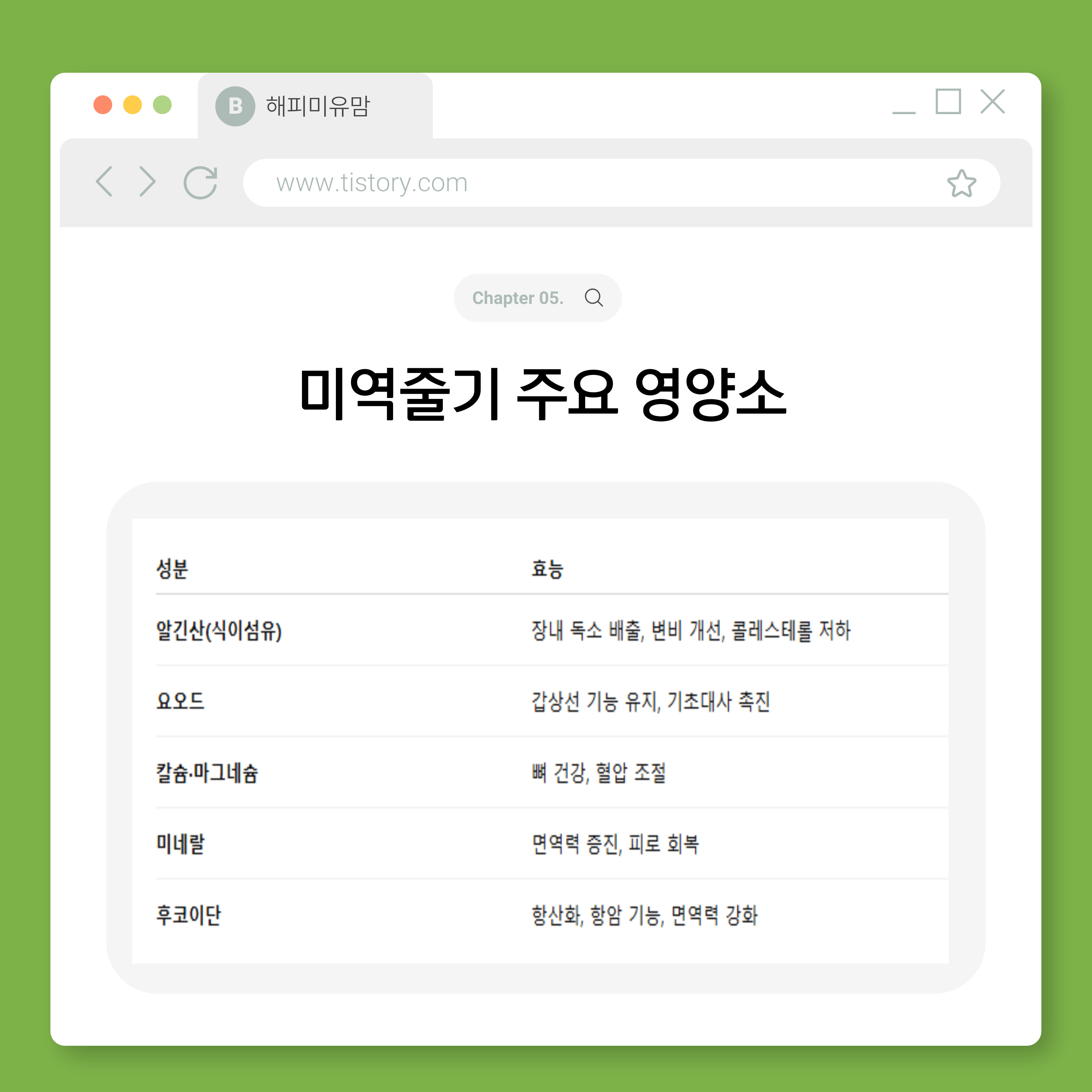 잎보다 질감은 더 단단하지만 영양소는 미역과 같은 성분입니다.
