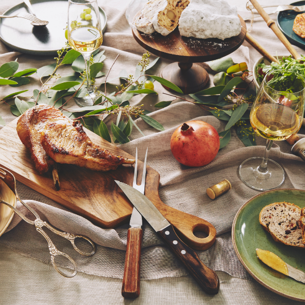 스톤웨어나 세라믹 소재 접시, 직물 냅킨, 목재 플래터 등을 활용하면 내추럴하면서도 고급스러운 무드를 낼 수 있습니다.