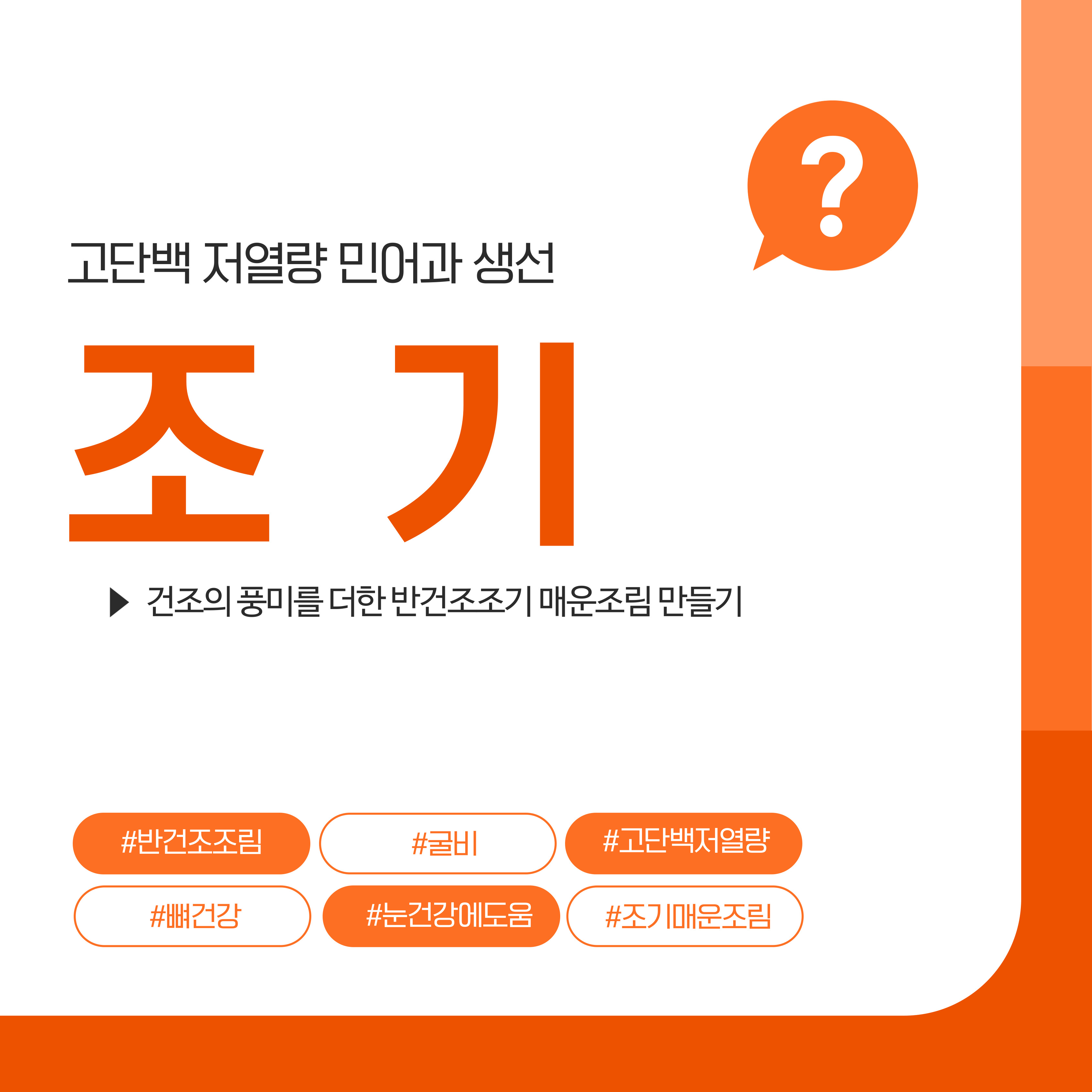 오늘 저녁 따끈한 밥과 함께 바다의 향을 담은 매운 조기조림 한 그릇 어떠신가요?