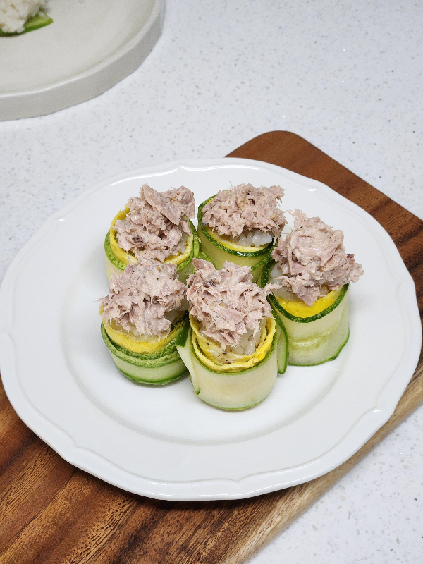 참치마요 오이초밥은 오이의 아삭함과 참치마요의 고소함이 어우러져 담백하면서도 조화로운 맛을 냅니다.