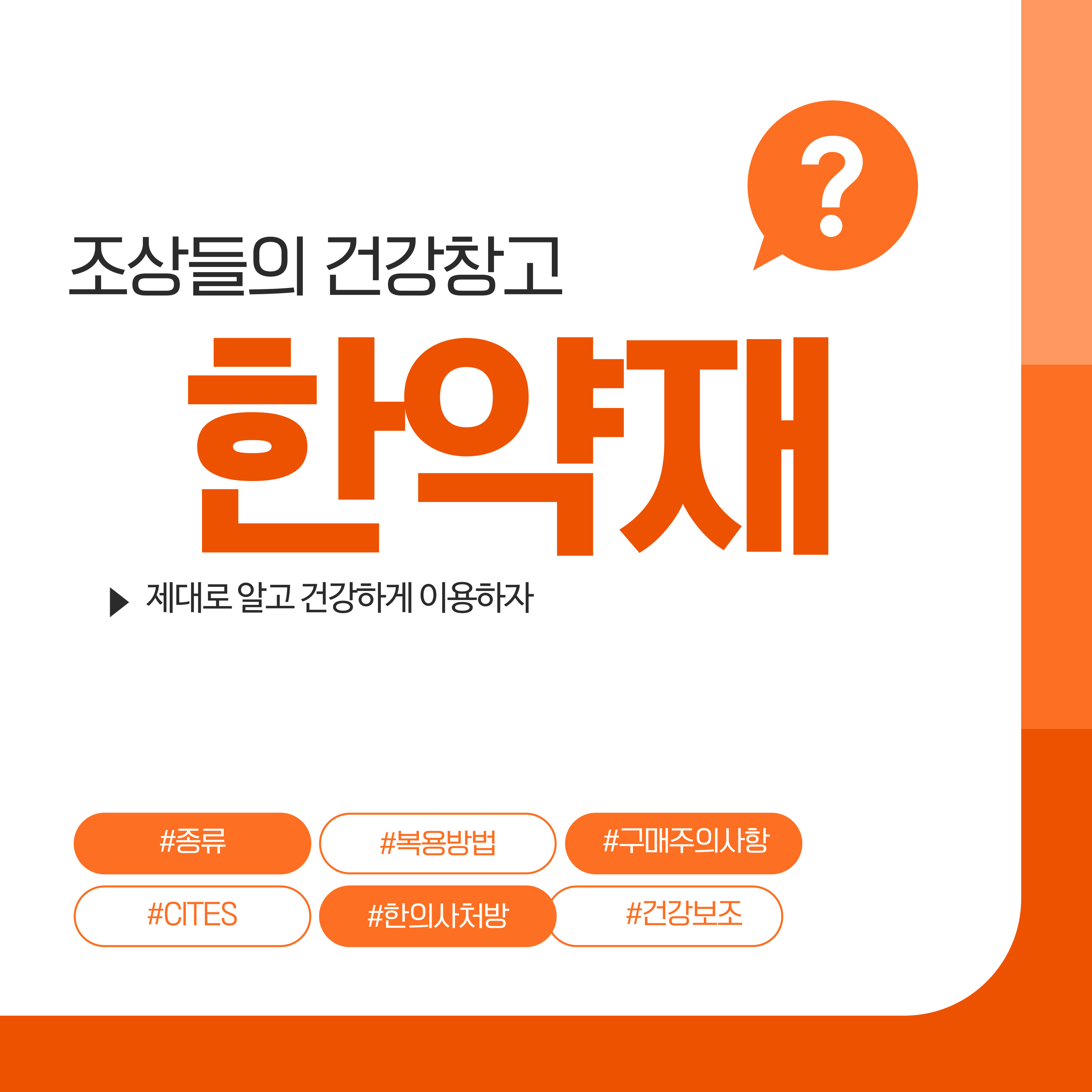 한약재는 오랜 경험과 전통을 바탕으로 균형 잡히고 안정적인 효과를 줄 수 있는 자연 유래 자원입니다.