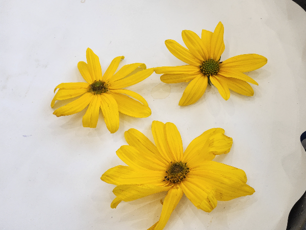 채취한 뚱딴지꽃은 꽃술과 줄기를 제거한 후 흐르는 물에 깨끗이 씻습니다.